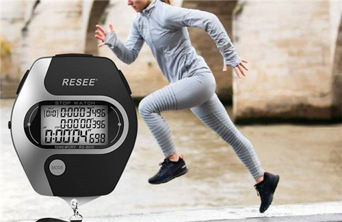 With stopwatch in hand, foot "stepping on the ground" and "flying": this is the most difficult part to master. When one foot touches the ground, the other leg should "fly up" naturally in the direction of buttocks straight as the tendon contracts, just like a rubber band bouncing upward. Attention should be paid to the quadriceps femoris and calf muscles.Use their power to fly up the hind legs. Dragonfly point water: one foot on the ground, the other foot in flight, do not force up, sports running stopwatch skills. It should fly lightly, about a foot above the ground is 1 foot = 12 inches, about the appropriate. Because of inertia, the foot will naturally move a little higher. The faster you run, the greater the rise distance caused by this inertia.